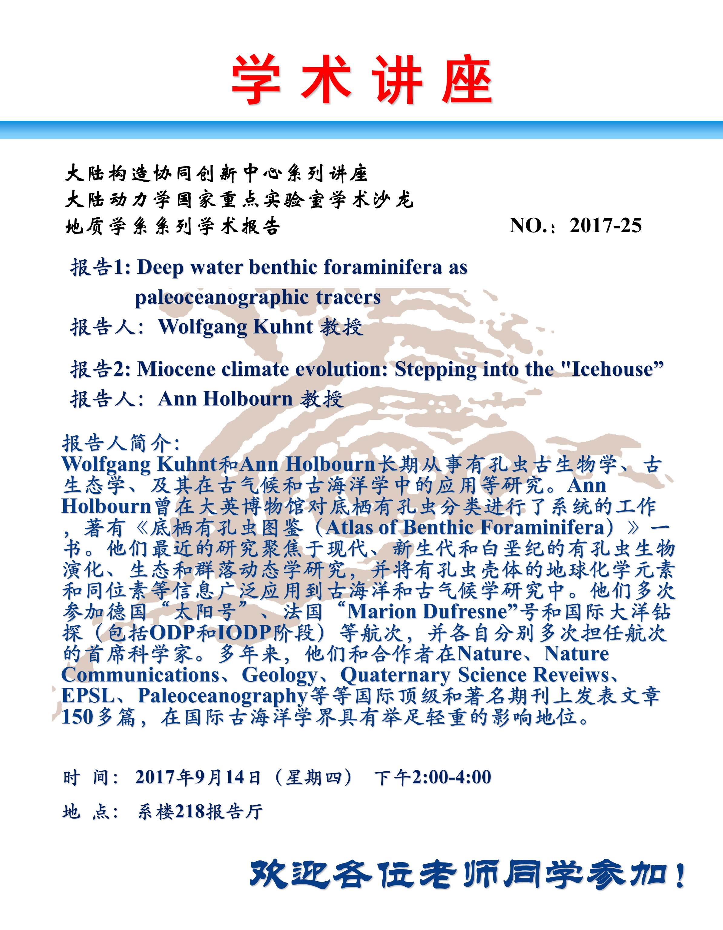 报告人:1.Wolfgang Kuhnt ; 2.Ann Holbourn