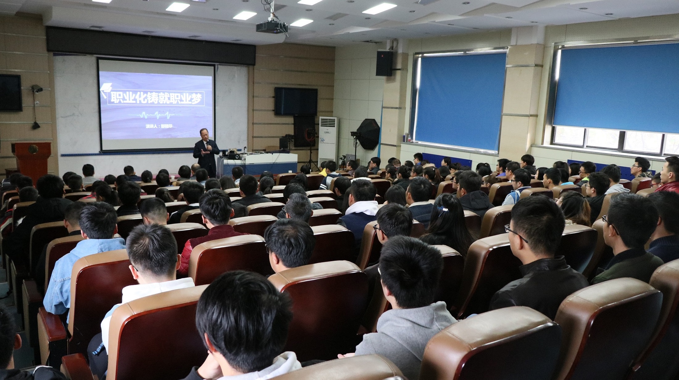 郜随印开场通过调整在场听众的坐姿开始,引导大家塑造“职业人”第一视觉,阐述职业素养、职业修养的重要性。报告中,他以生动详实的事例,深刻剖析了成功职业人身上所具备的职业素养;以三国时期政治家诸葛亮临终前写给他儿子诸葛瞻的一封家书——《诫子书》,指出职业素养是一种修炼的过程,勉励大家要注重日常生活中的职业素质的养成;在如何走向成功方面,指出要从“管理好方向”、“管理好时间”、“管理好自己的行为”三方面不断审视、反思自己;与同学们分享了用人单位选人用人标准,讲解了在求职面试中需要注意的问题,期待同学们利用好时光,努力提升自身职业素养。