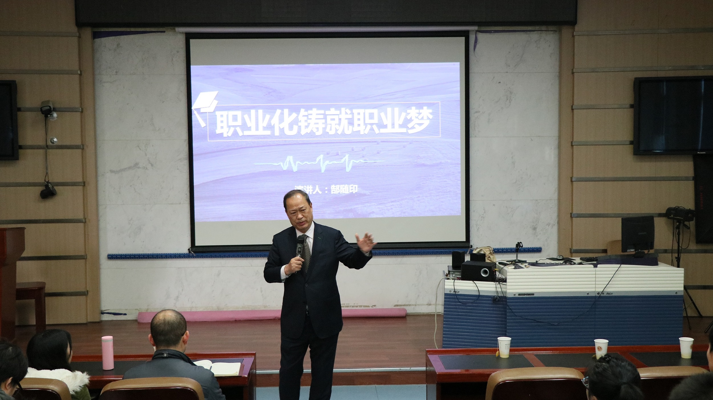 11月21日下午,由学生就业创业指导服务中心主办、a片网站 承办的就业能力提升讲座,在太白校区伯声报告厅成功举办。陕西高级人才事务所郜随印所长作了题为《大学生职业素养与就业技巧》的报告,百余名求职学生参加了本次报告会。