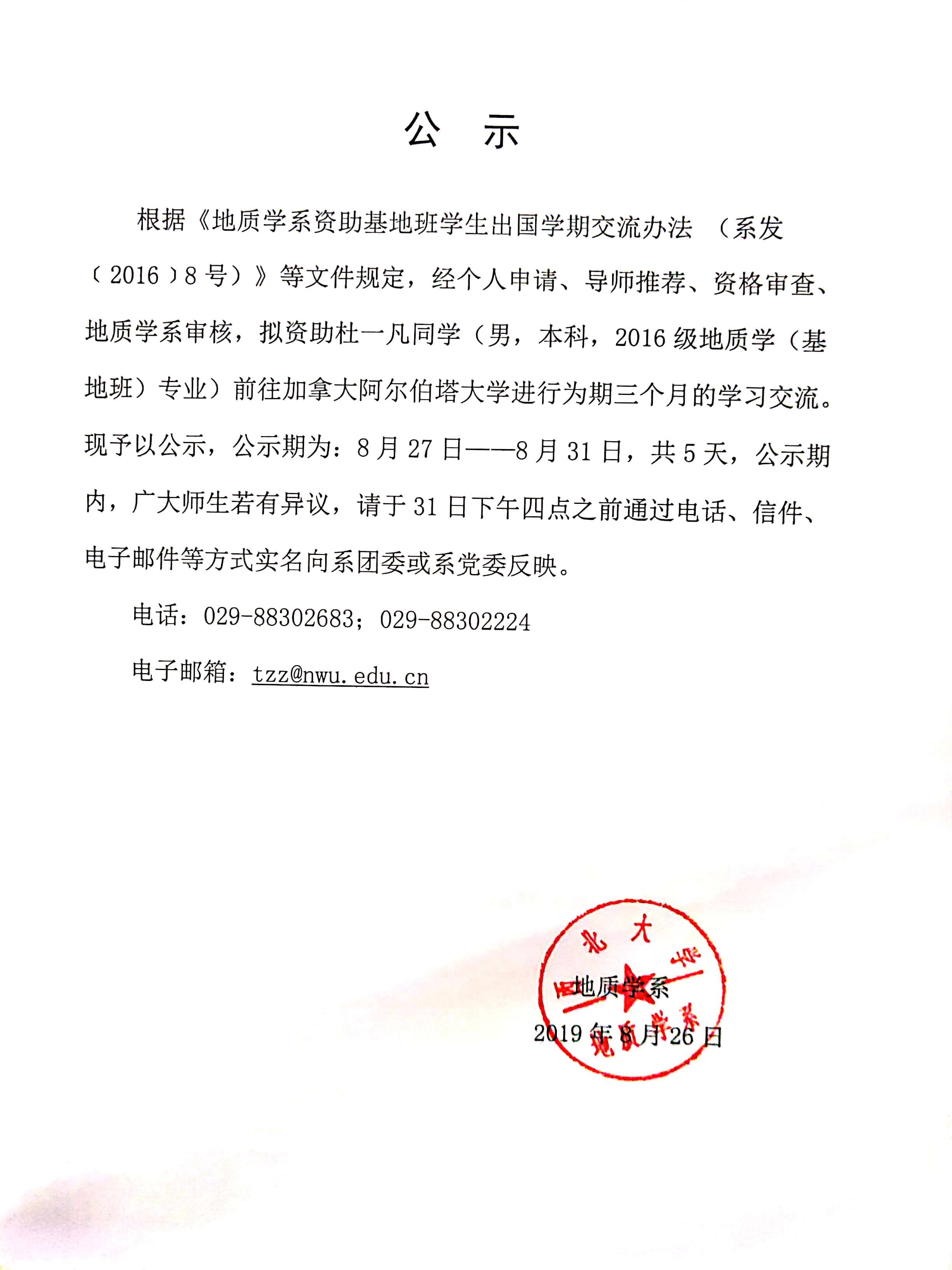 a片网站 关于资助杜一凡同学出国事宜的公示