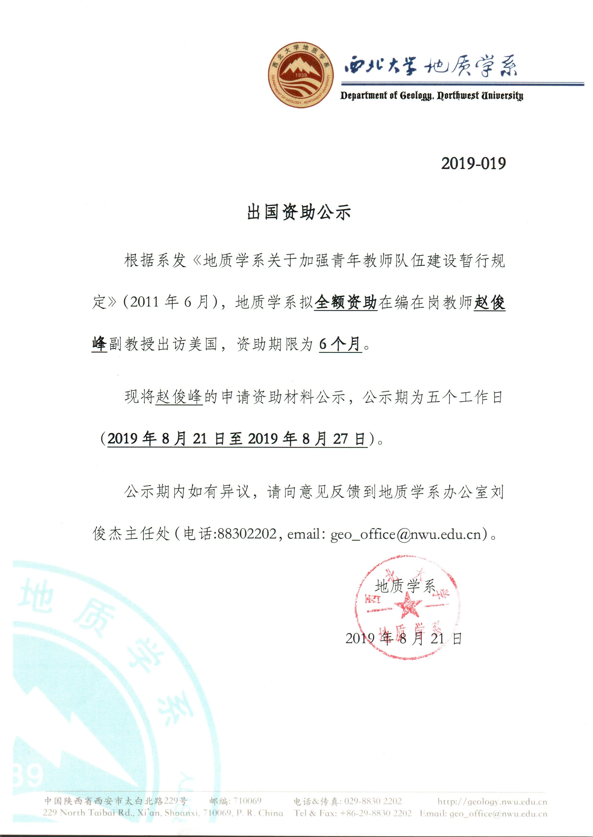 a片网站 关于资助教师赵俊峰副教授出国交流学习的公示