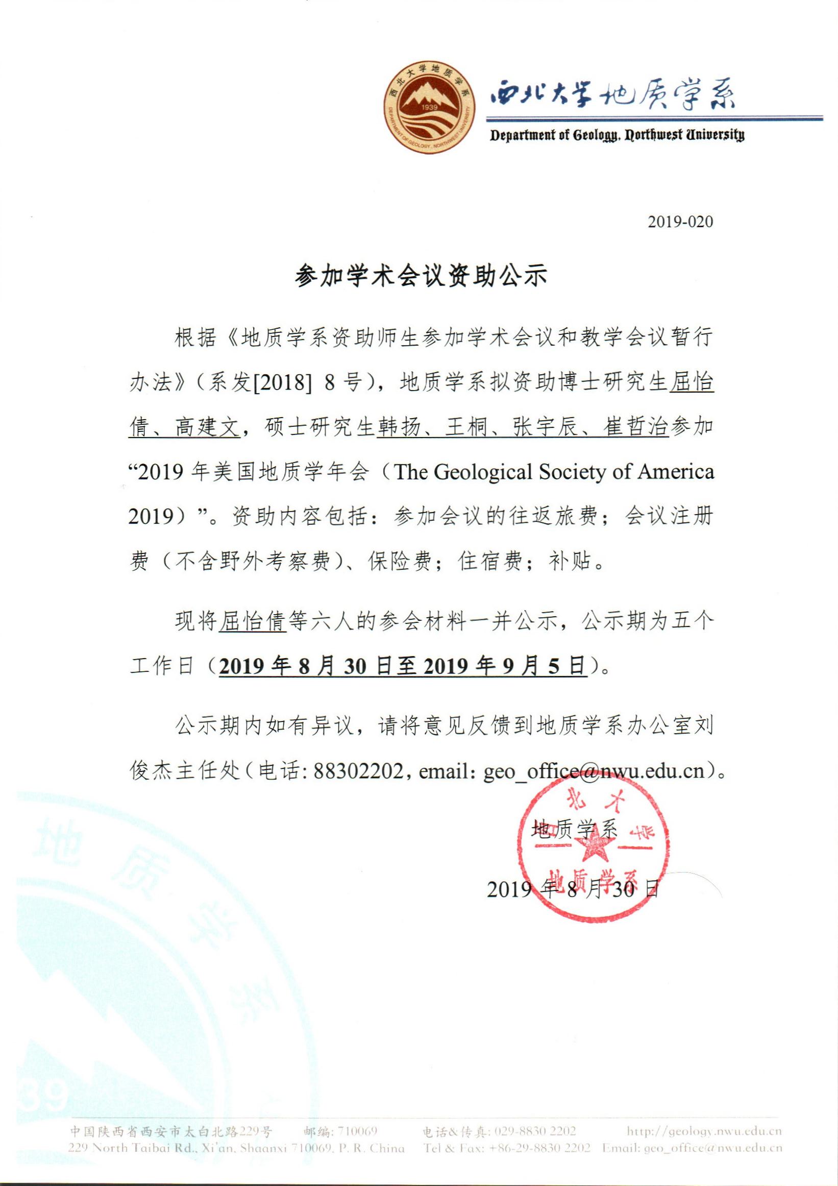 a片网站 关于资助屈怡倩等6名同学出国参加学术会议的公示