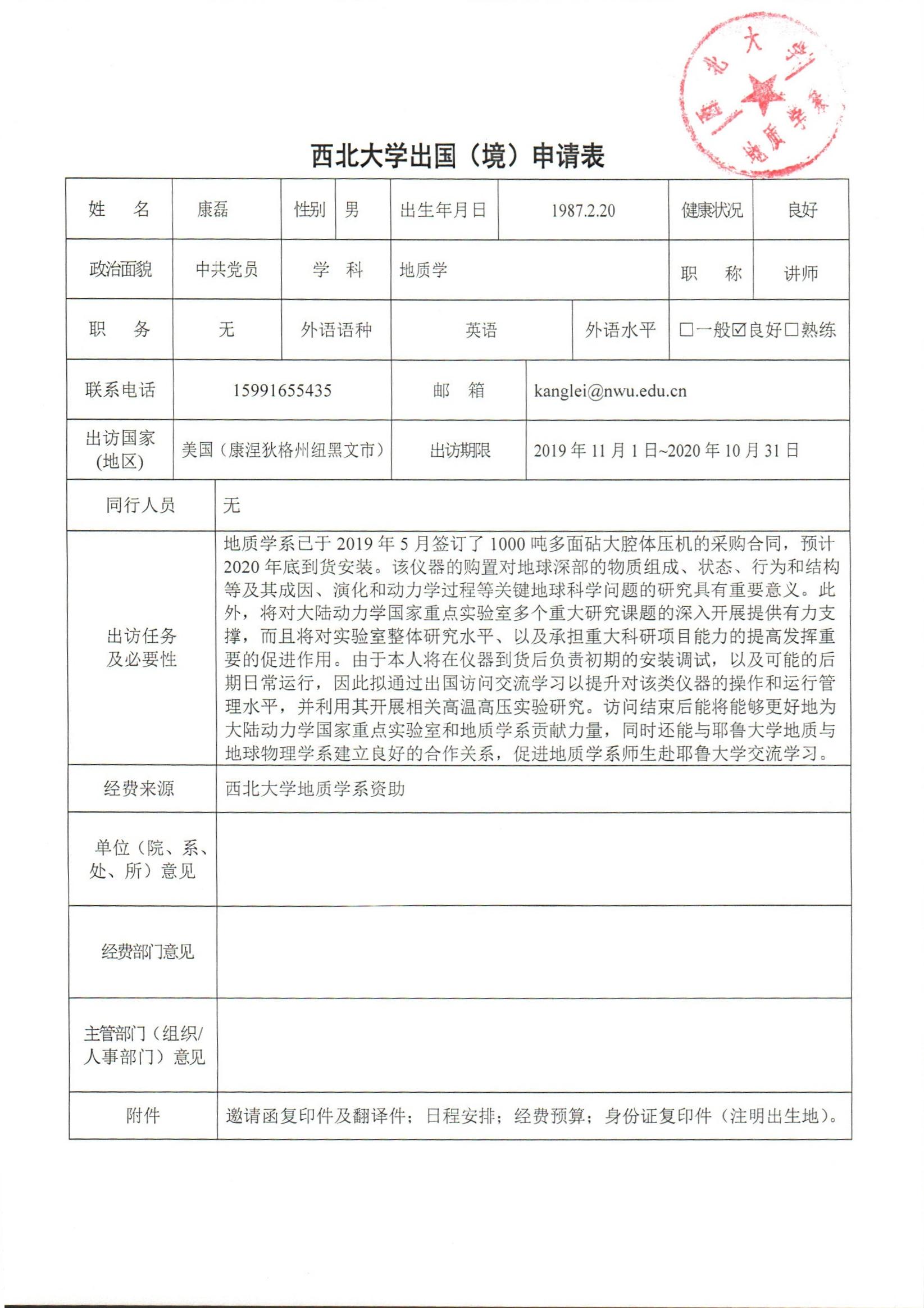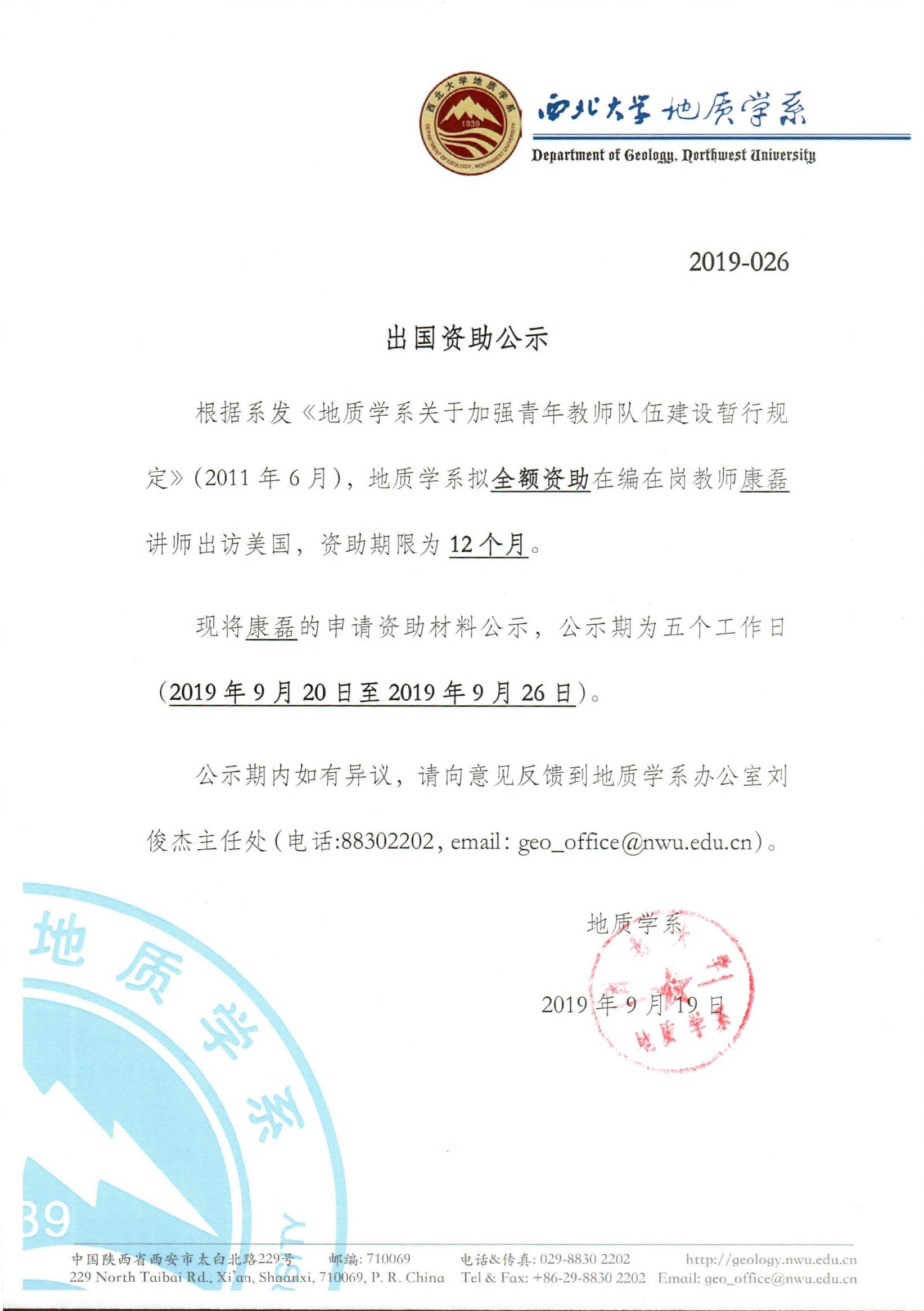 a片网站 关于资助教师康磊出国学习交流的公示