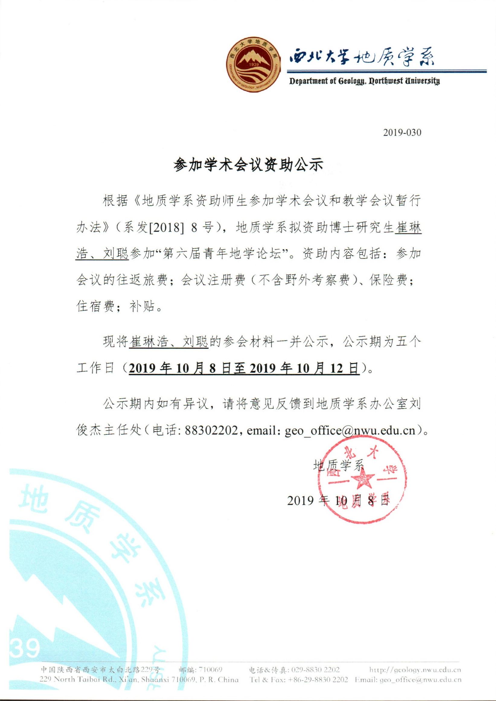 a片网站 关于资助研究生崔琳浩、刘聪参加学术会议的公示