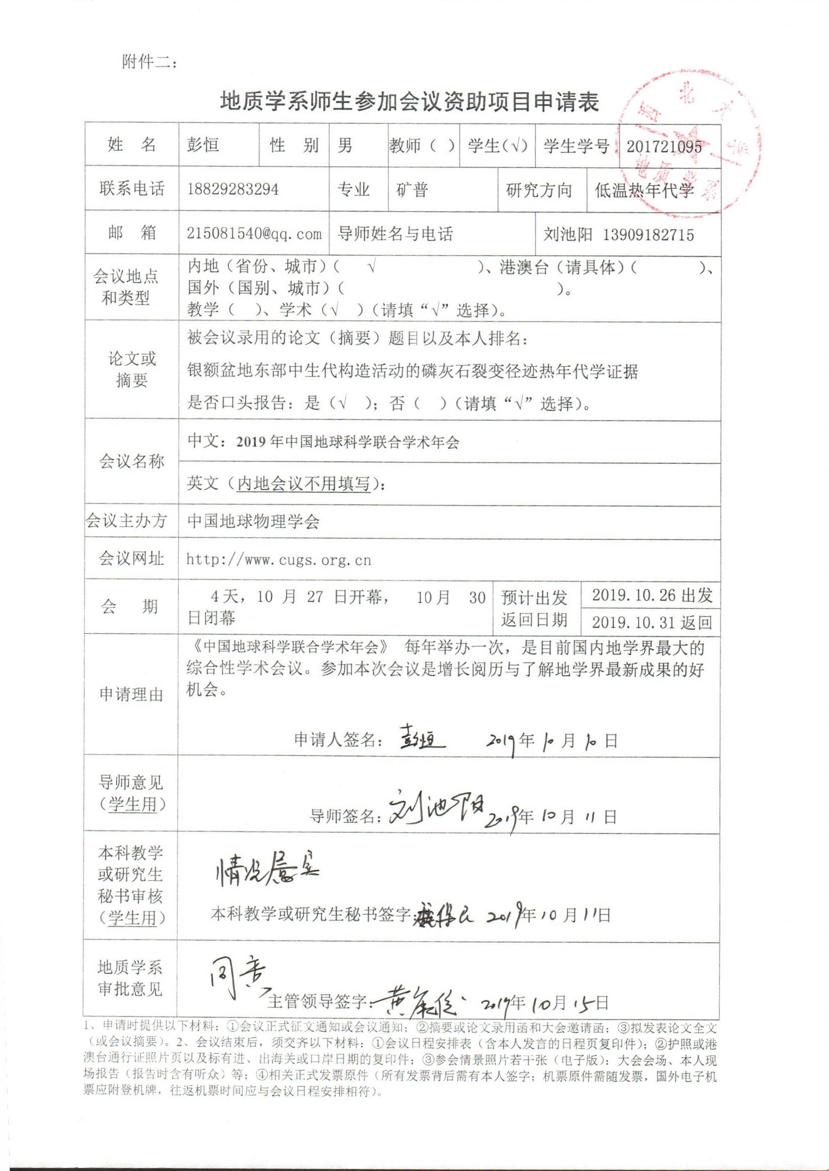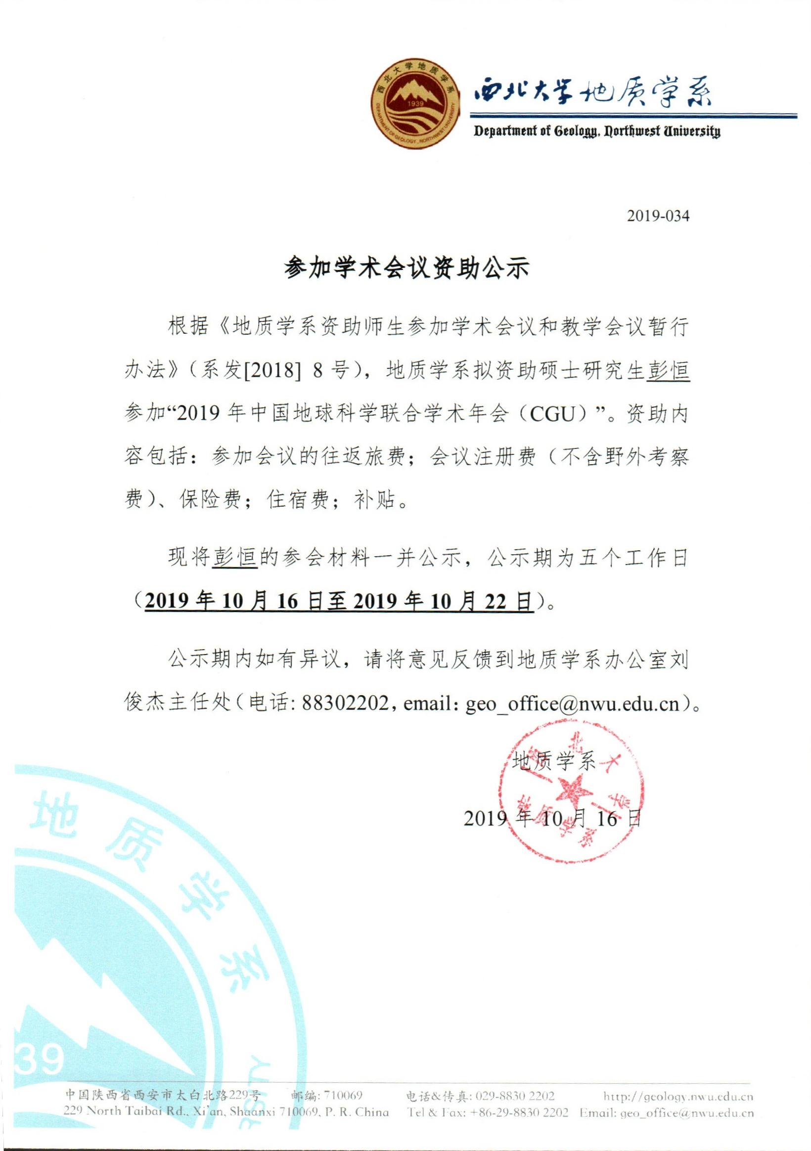 a片网站 关于资助硕士研究生彭恒参加学术会议的公示