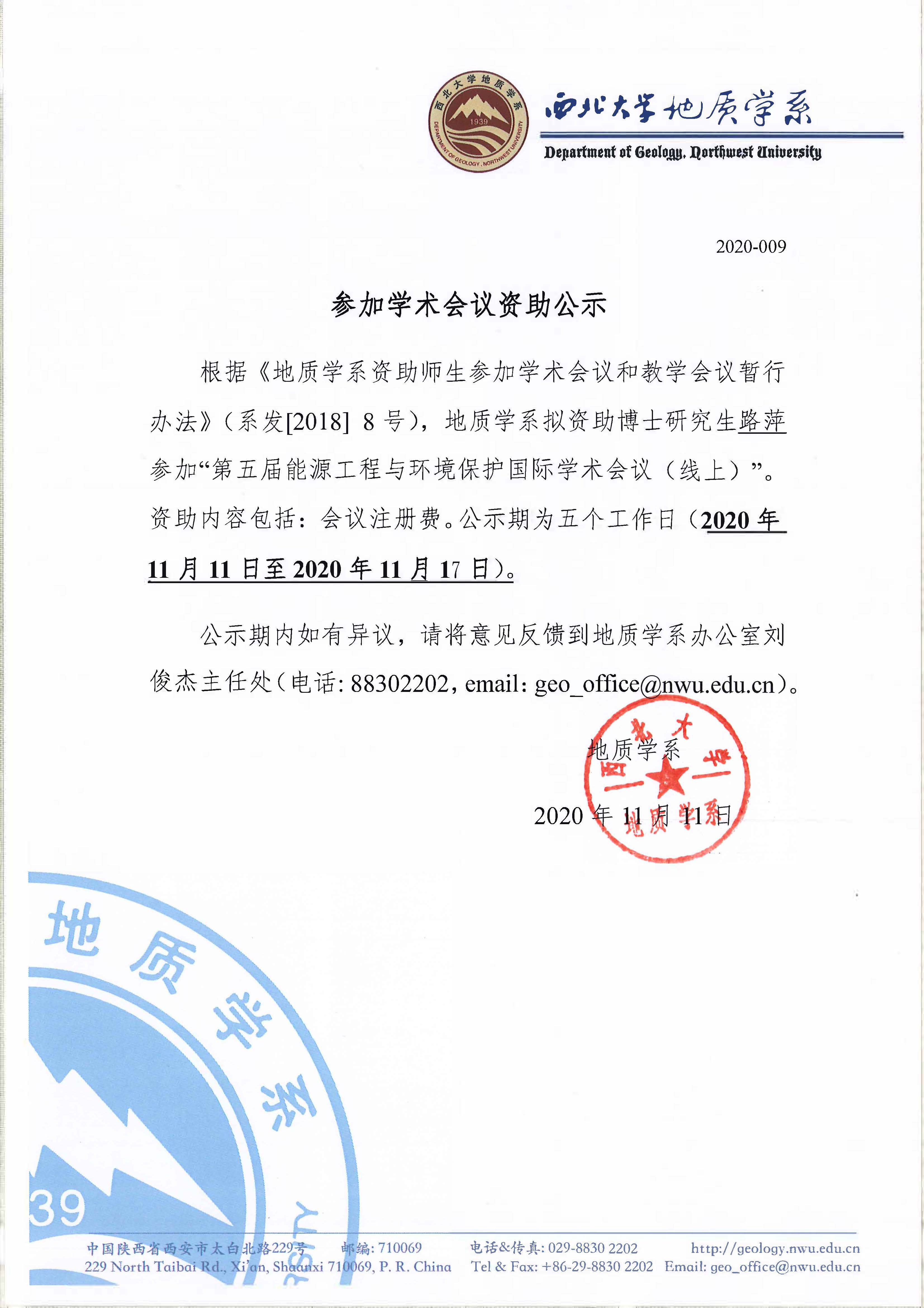 a片网站 关于资助博士生路萍参加学术会议(线上)的公示