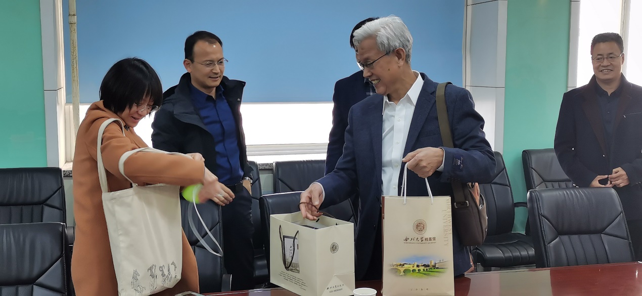 座谈会结束后,张志飞、王旭州向余际从一行赠送有关资料。会后,调研组参观了博物馆地质馆和校史馆。