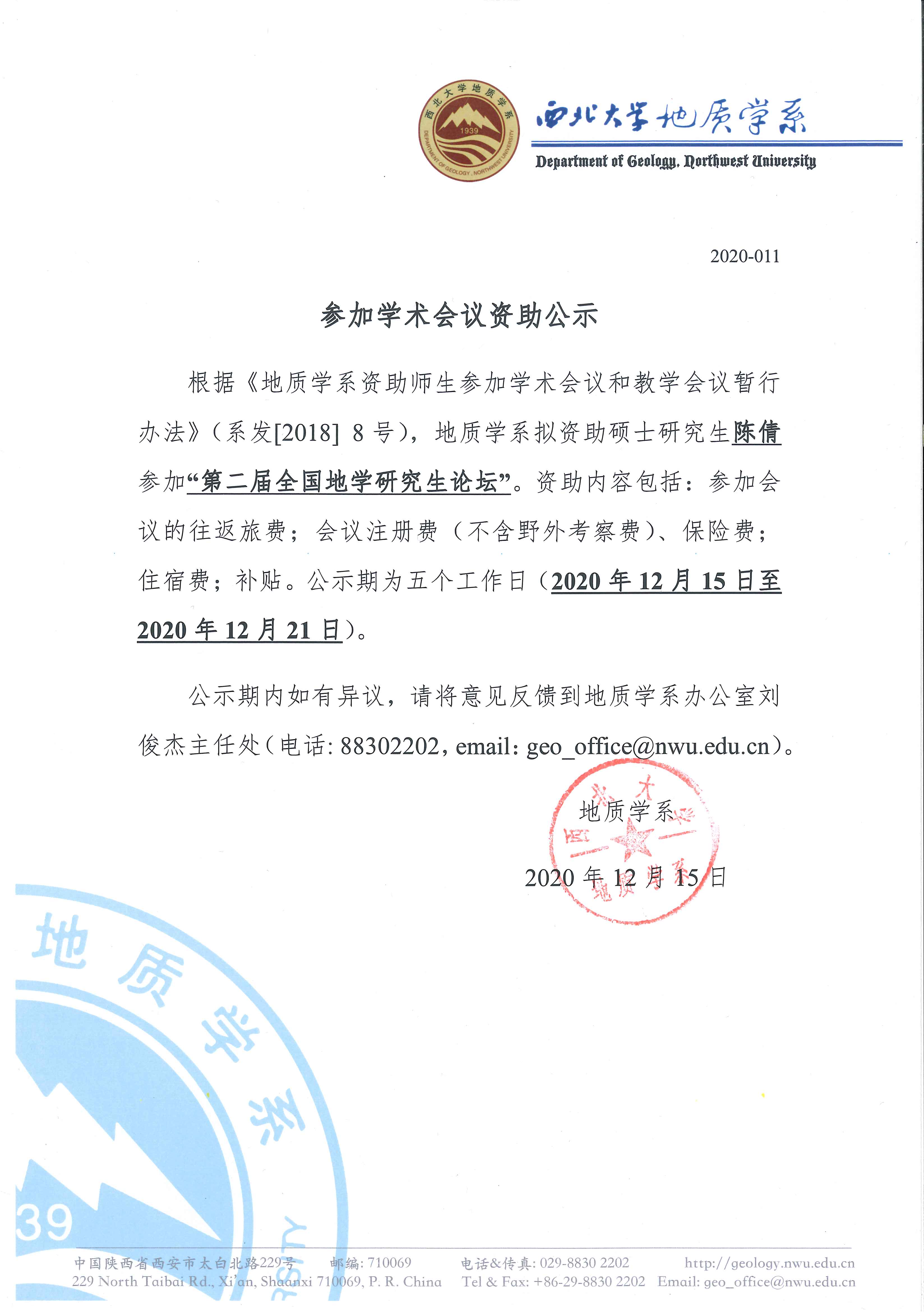 a片网站 关于资助硕士生陈倩参加学术会议的公示