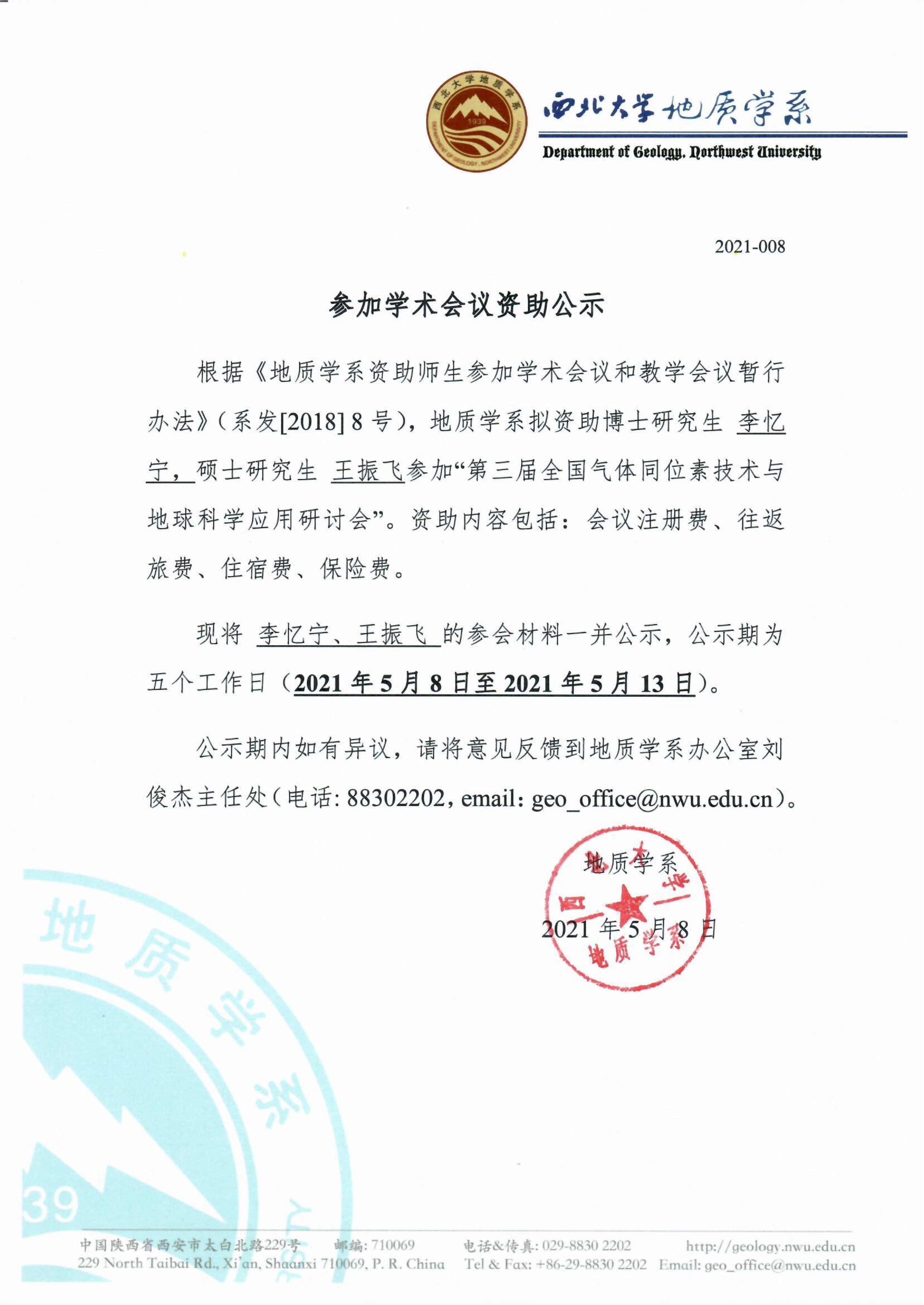 a片网站 关于资助博士生李忆宁、硕士生王振飞参加国内会议的公示