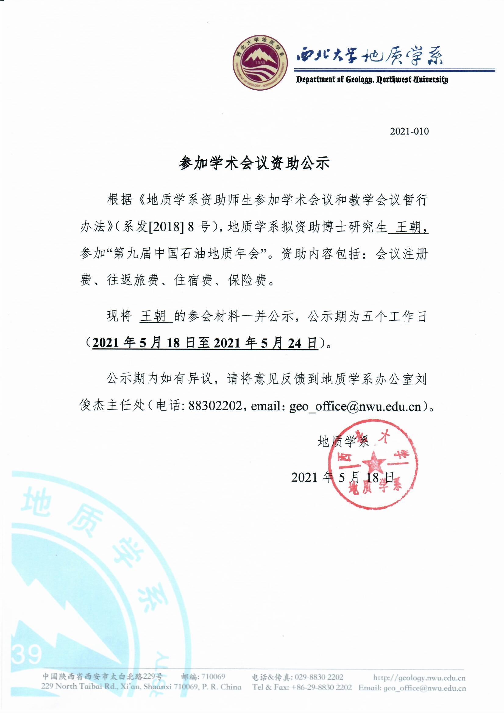 a片网站 关于资助博士生王朝参加国内会议的公示