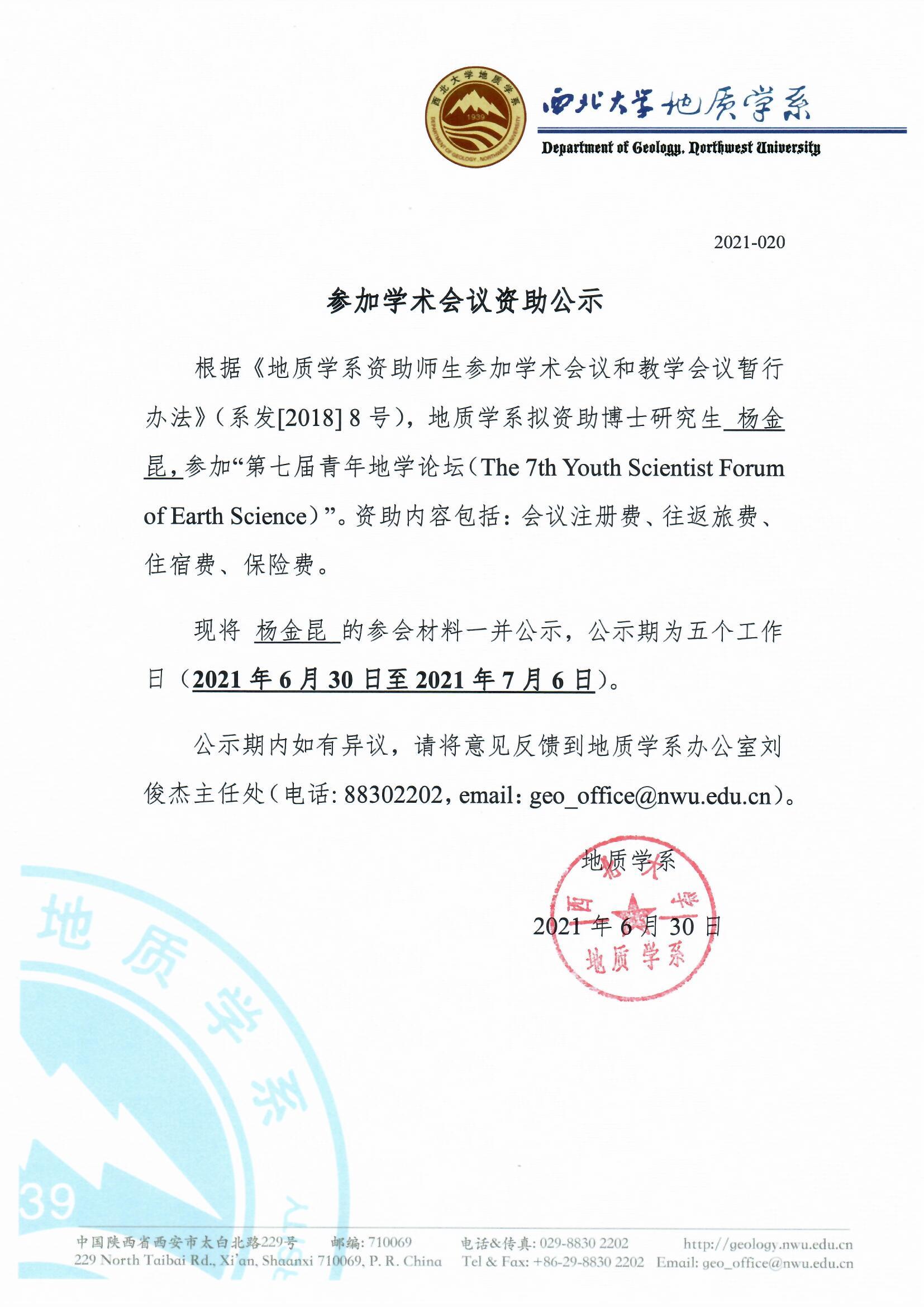 a片网站 关于资助博士生杨金昆参加国内会议的公示