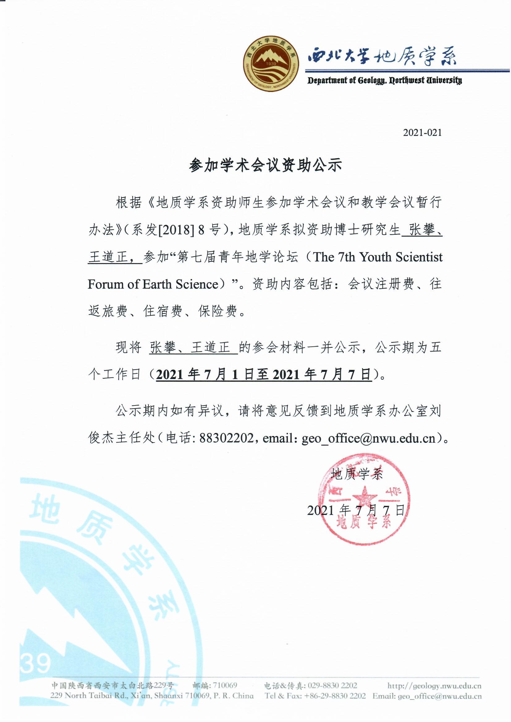 a片网站 关于资助博士生张攀、王道正参加国内会议的公示