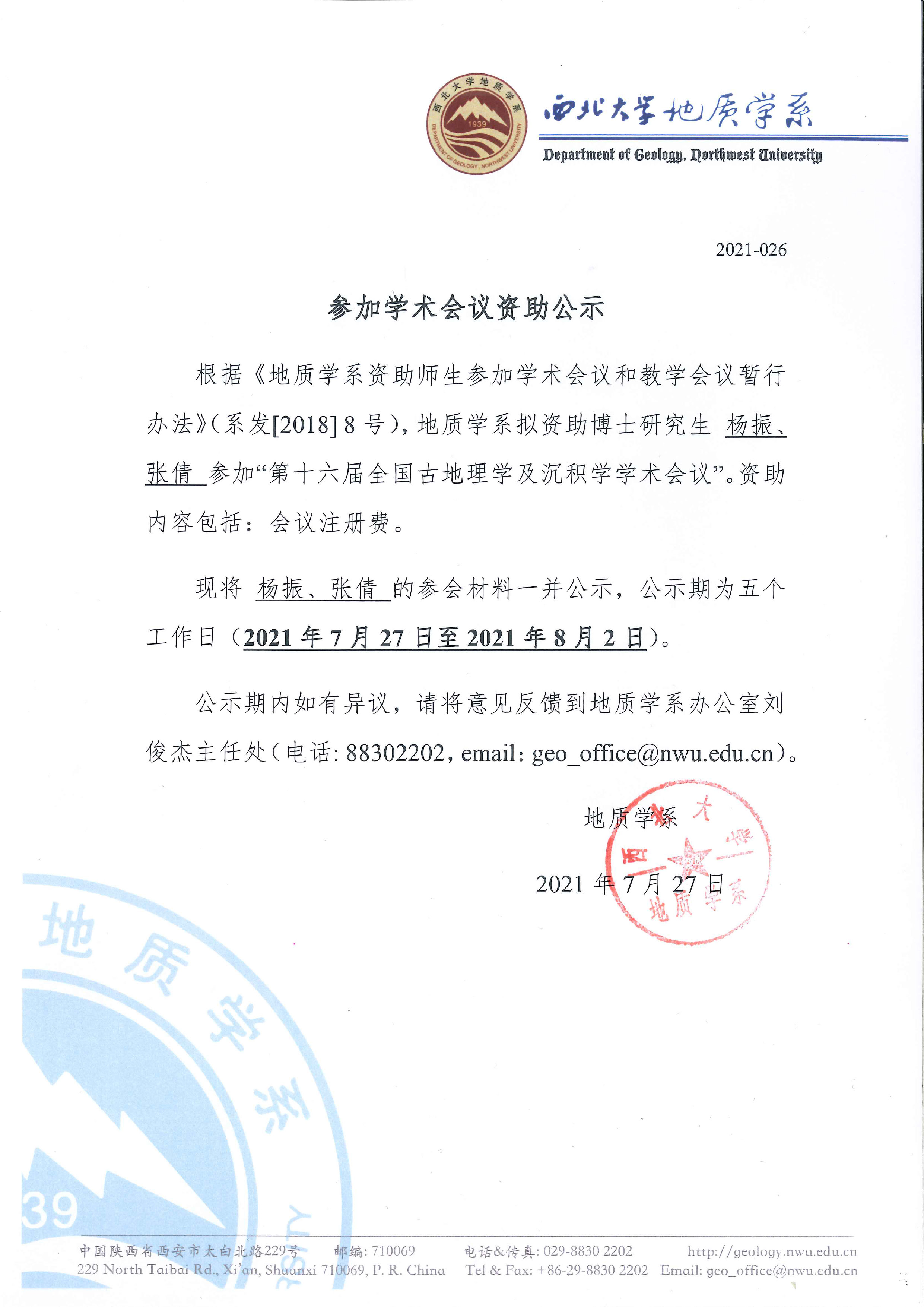 a片网站 关于资助博士研究生杨振、张倩参加国内会议的公示
