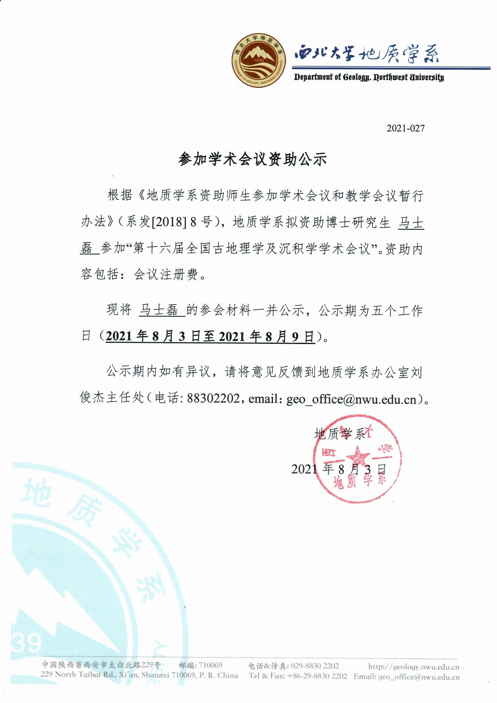 a片网站 关于资助博士研究生马士磊参加国内会议的公示