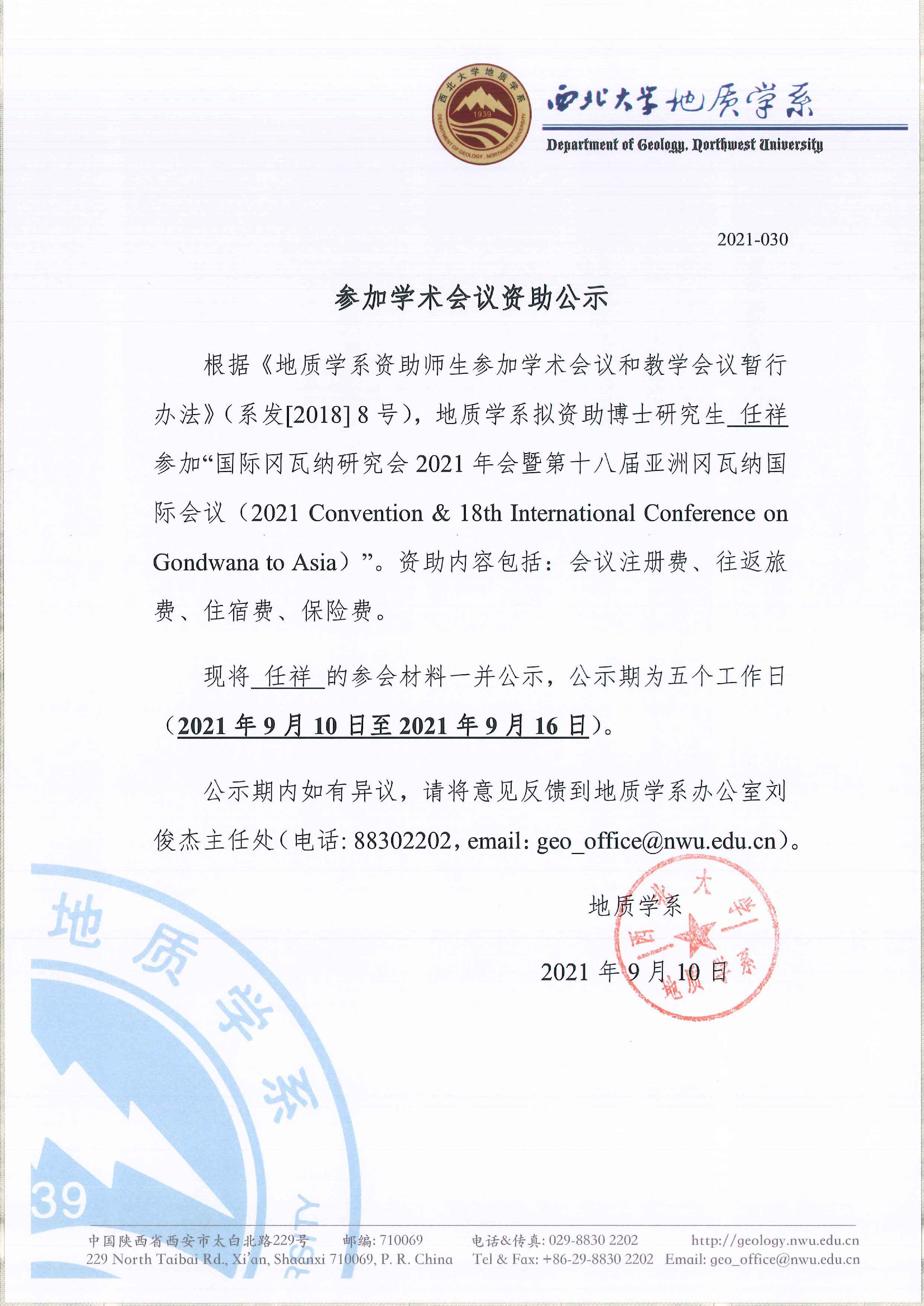a片网站 关于资助博士研究生任祥参加国际会议的公示