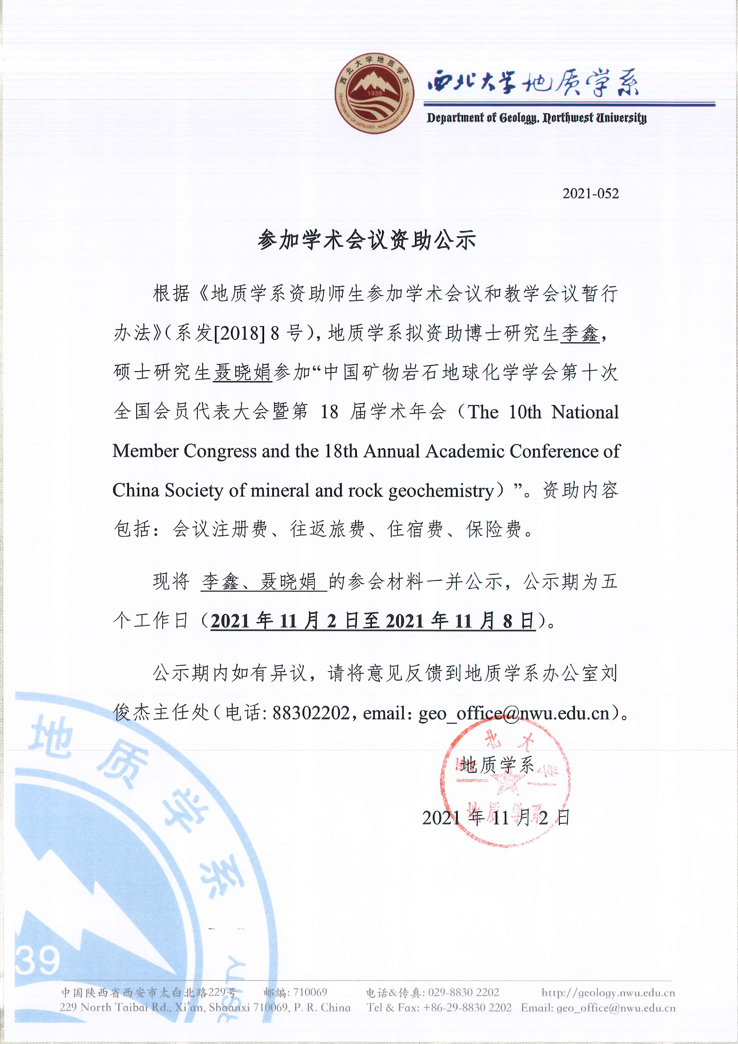 a片网站 关于资助博士研究生李鑫等参加国内会议的公示