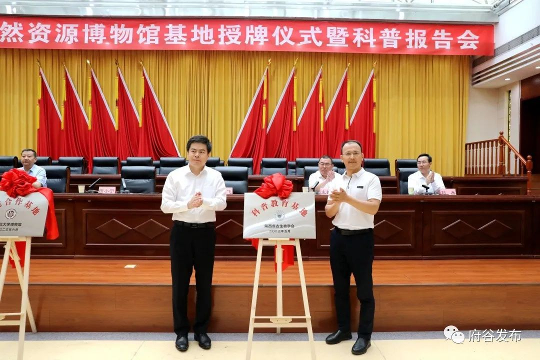 6月26日,系主任张志飞一行前往府谷县举行自然资源博物馆基地授牌仪式暨科普报告会,并向府谷自然资源博物馆授予“陕西省古生物学会科普教育基地”和“a片网站 博物馆共建合作基地”牌匾。府谷县县委书记田小宁,县委常委、副县长白艳霞,副县长刘春雷,a片网站 博物馆常务副馆长刘杰等领导参加授牌仪式。张志飞、田小宁为“陕西省古生物学会科普教育基地”揭牌,白艳霞致辞。