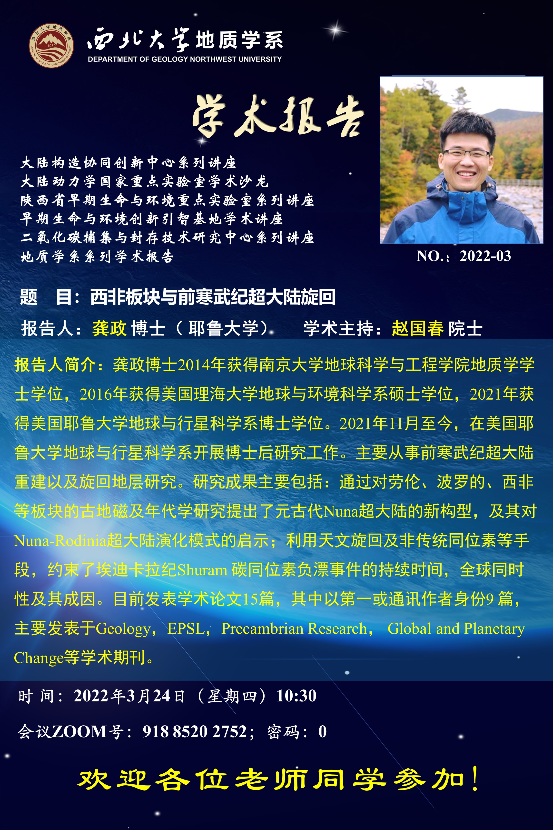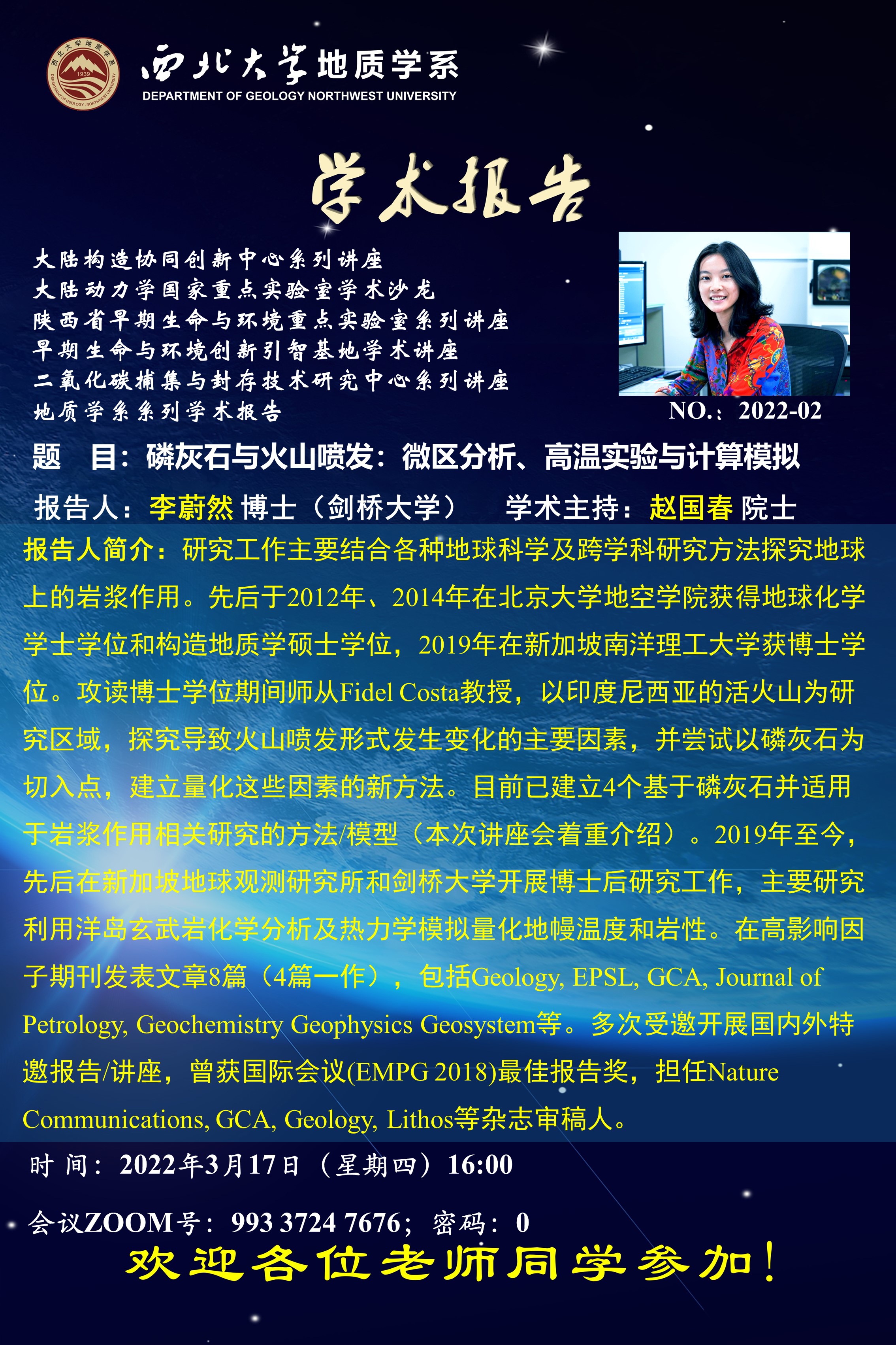 地 点:线上会议,ZOOM号:993 3724 7676;密码:0