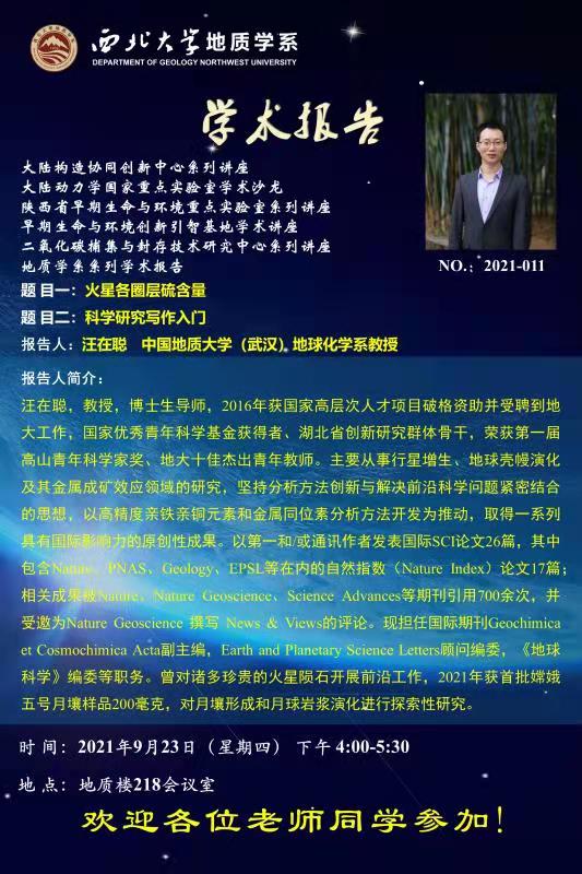 报告人:汪在聪中国地质大学(武汉)地球化a片网站教授